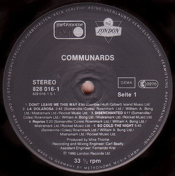 Якщо вам подобається платівка Communards - Communards /G/ insert, поділіться посиланням у соціальних мережах: