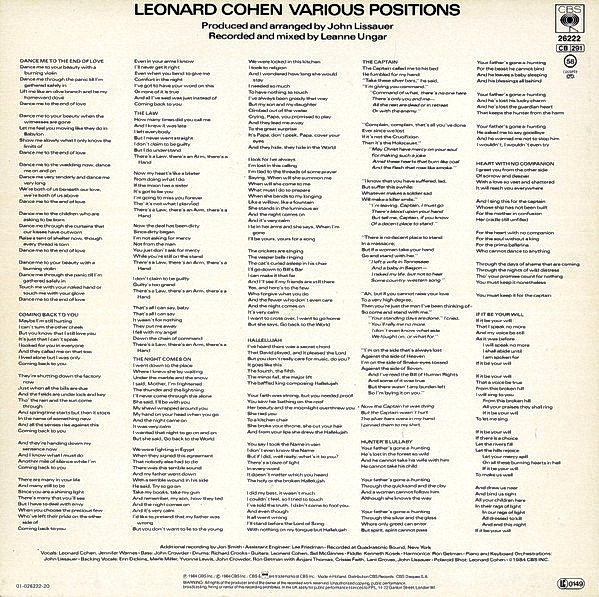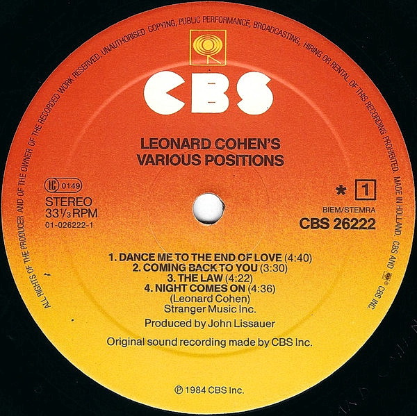 Якщо вам подобається платівка Leonard Cohen - Various Positions /NL/, поділіться посиланням у соціальних мережах: